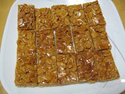 うすいクッキー生地の上に甘いアーモンドスライスをのせて焼いたものです。