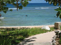 海岸で、上から見てもわかるようなところにも魚が泳いでいるし、ちょっと先のほうに行くと、ダイビングとかシュノーケリングのスポットになっています。