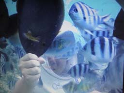 餌付けでは、黒い魚がけっこう勢いよく餌を食べにくるので、指かまれましたよ・・・。